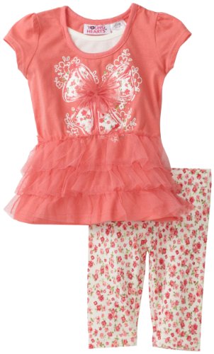 Young Hearts Baby-Girls Infant Tunic With Bow Print and Floral Legging Set, Red Music, 12 Months Best